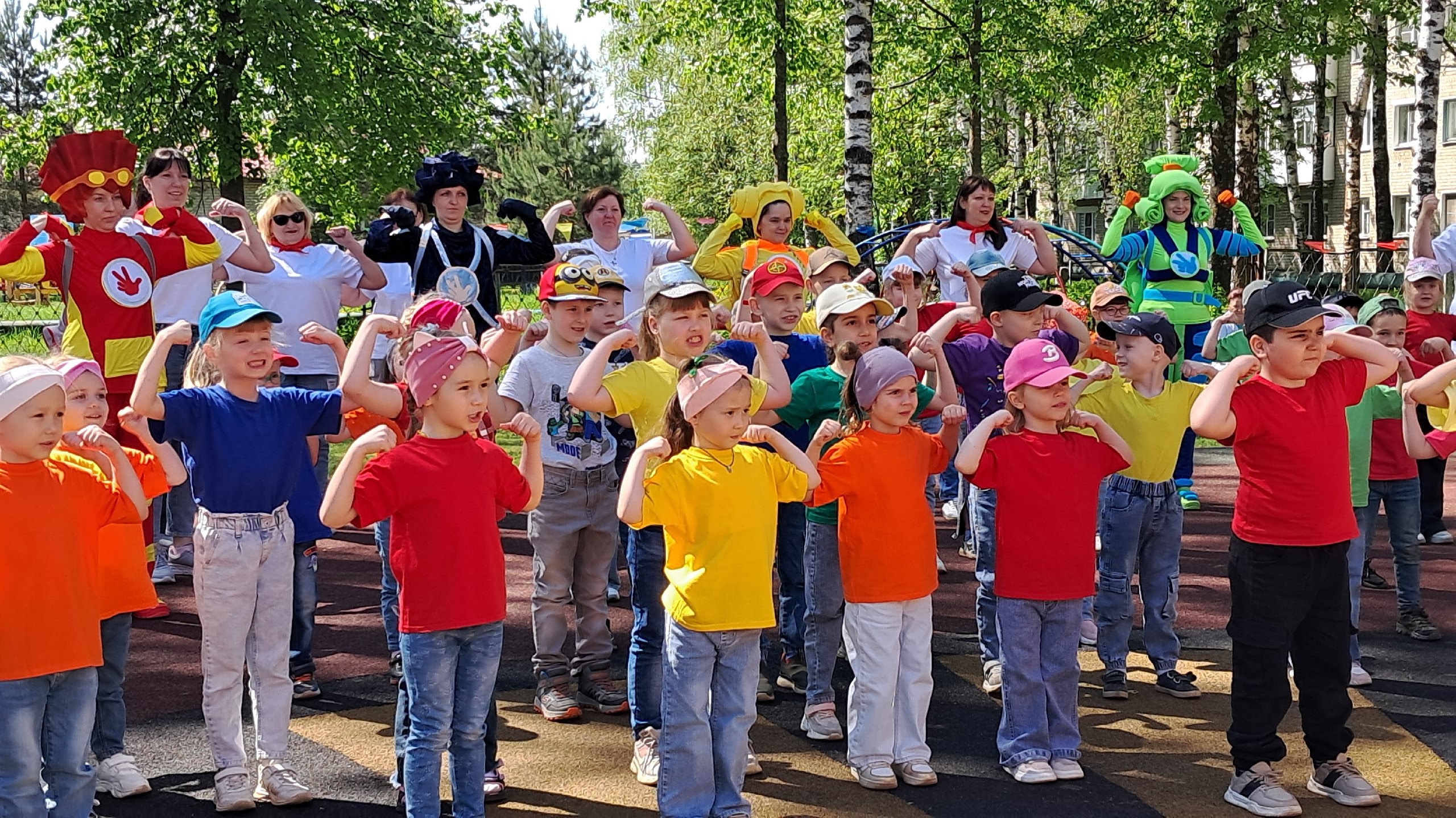 На площадке всех ждал настоящий сюрприз: к ребятам вышли их любимые герои — Фиксики, чтобы поиграть с дошколятами и всем вместе весело провести время!